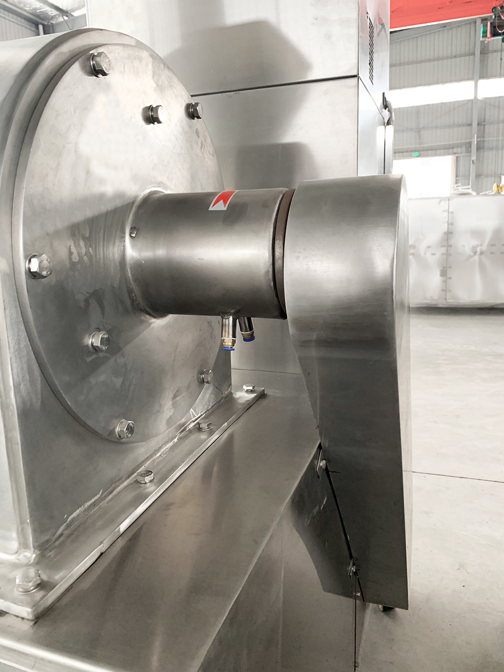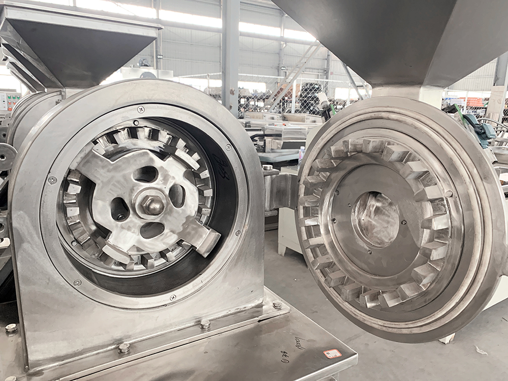 本機結構簡單、堅固、運轉(zhuǎn)平穩(wěn),粉碎效果好、噪音低、振動小、生產(chǎn)過程中無粉塵飛揚,被粉碎物可直接由主機磨腔中排出,粒度大小通過更換不同孔徑篩網(wǎng)而控制。符合GMP要求。